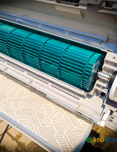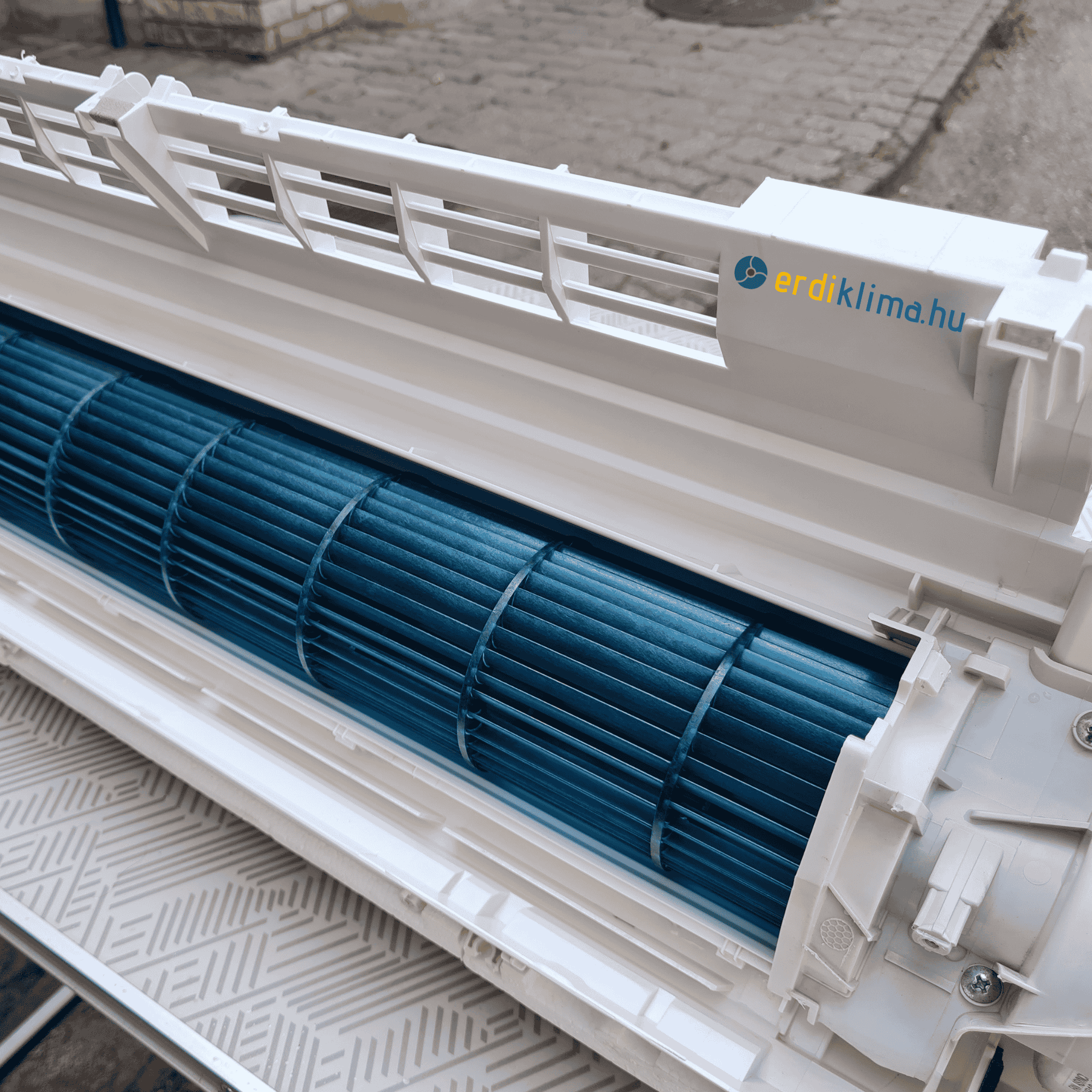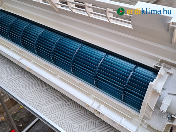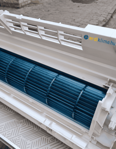 Teljeskörű karbantartásnál leszereljük a burkolatot, kiszereljük a ventillátort, cseppvíz tálcát és alaposan kitakartjuk, fertőtlenítjük a legeldugottabb részeken is. A kültéri egységet is teljesen kitakarítjuk.