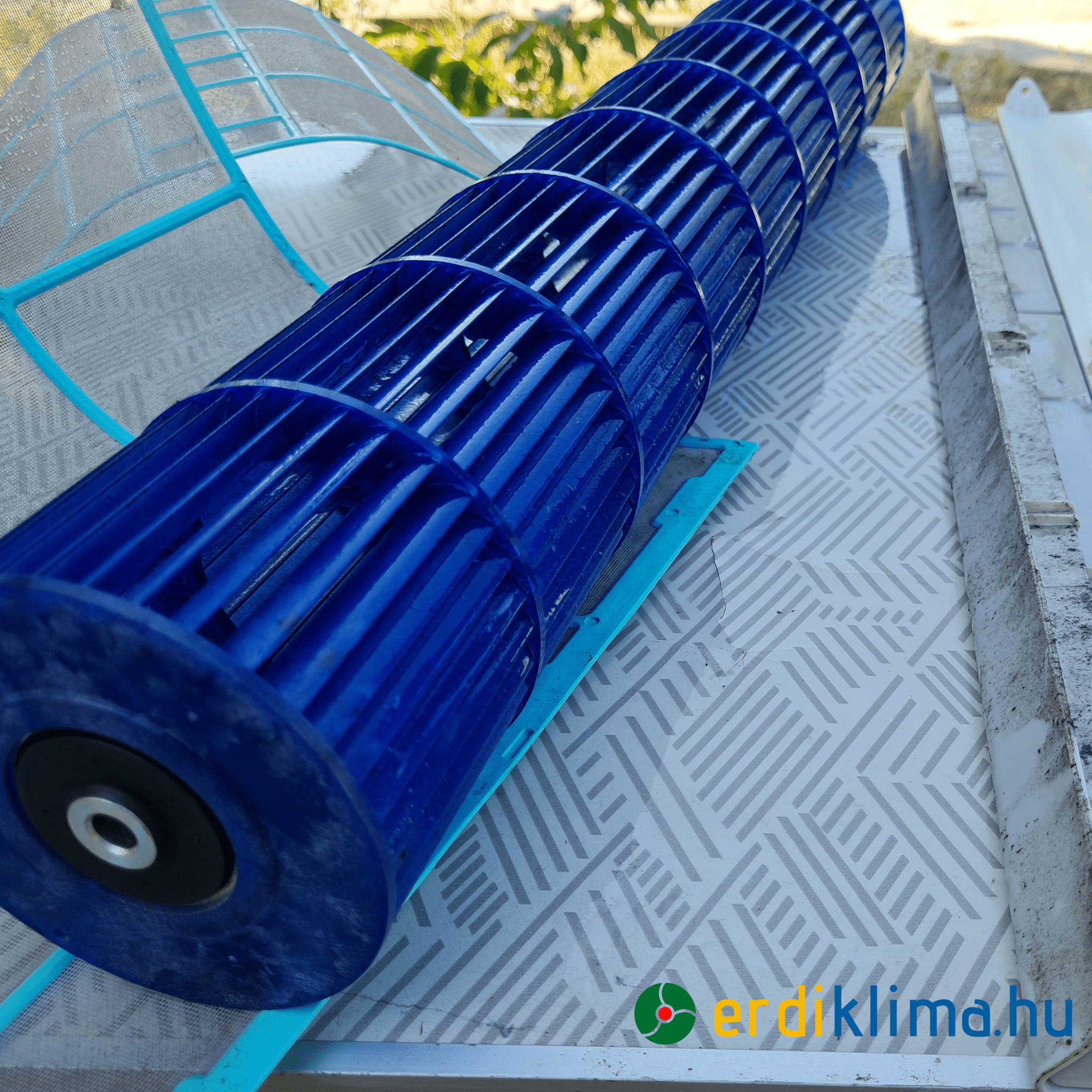 Alap takarítás esetén leszereljük a burkolatot, kiszereljük a ventillátort és alaposan letakarítjuk a lerakódott szennyeződéseket a csepvíz tálcából. Tisztítjuk a kültéri egység hőcserélőjét is.